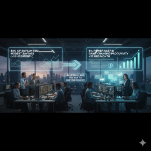 הנתונים חושפים מציאות של "פער דיגיטלי" בתוך הארגון. רוב העובדים (85%) מדווחים על חיסכון צנוע של פחות מ-10 שעות בחודש – זה נחמד, אבל לא משנה את כללי המשחק. אולם, קיימת קבוצת עלית של "Power Users" (כ-6% בלבד) שחוסכת למעלה מ-20 שעות עבודה בחודש.